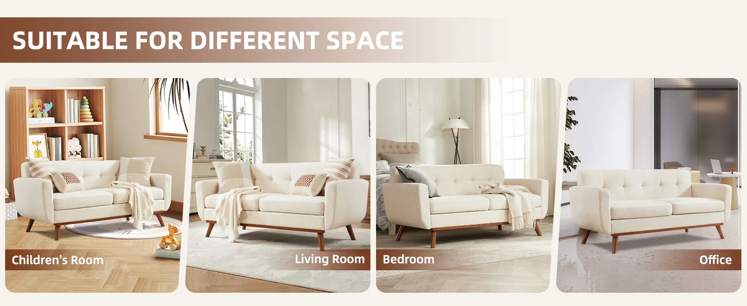 TIMELESS APPEAL: Stylish tufted linen upholstery with a mid-century low-profile design brightens your whole home with modern craftsmanship and classic aesthetics. The solid wood base frame design also adds a touch of color to your furniture. The small loveseat provides stylish and functional furniture for your apartment, adding more features to your home while decorating the room.